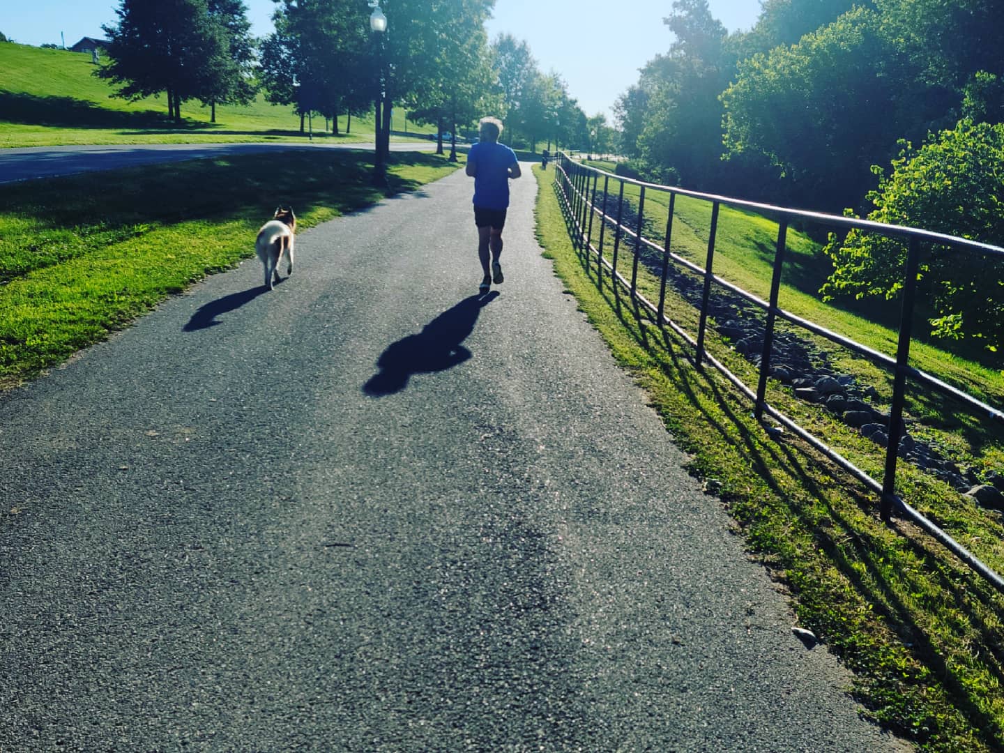 Fast forward again to a month and half later and my runs were getting more and more painful. I remember after one run coming home, stretching and feeling an ache in my groin, it hurt so bad trying to toss from one side to the other while sleeping and I knew I was in trouble when I tried getting out of bed to go to the bathroom in the morning and I could barely put weight on my leg! OUCH. I guess this is what they refer to as, round ligament pain. No bueno. I ended up taking a few weeks off of running and snowballed into not running again the entire pregnancy. Unless you count that one time I was caught in a thunder/rain storm while out on a walk with the pups and I “sprinted” 2 blocks home. I did try to continue doing light weight/body weight exercises to keep moving and in hopes of making for an easier delivery. That slowly fizzled out and I ended up just counting my daily walks with the pups as exercise.